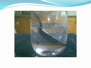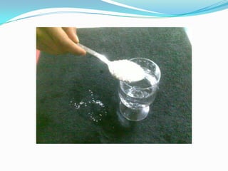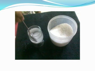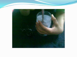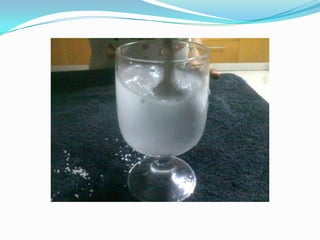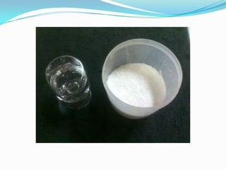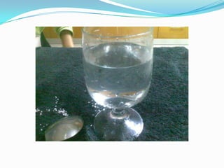 O documento descreve três experiências realizadas com solventes e solutos. A primeira experiência usou mais solvente e menos soluto, a segunda usou mais soluto e menos solvente, e a terceira usou areia como soluto insolúvel com mais solvente e menos soluto.