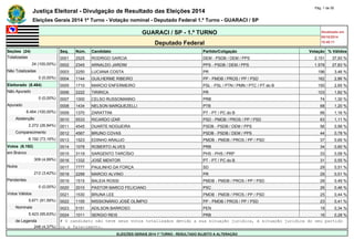 O documento apresenta os resultados das eleições para deputado federal no município de Guaraci, SP. Rodrigo Garcia do DEM foi o candidato mais votado com 2.151 votos (37,93%), seguido por Arnaldo Jardim do PPS com 1.578 votos (27,83%) e Luciana Costa do PR com 196 votos (3,46%). O total de eleitores foi de 8.464 e a abstenção foi de 2.272 (26,84%).