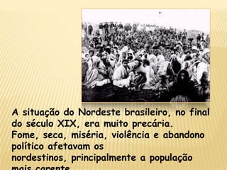 No final do século 19, o Nordeste brasileiro sofria com fome, seca e miséria. Isso, junto com o fanatismo religioso, levou o beato Conselheiro a liderar um movimento de fanáticos, jagunços e desempregados na Bahia entre 1896-1897, conhecido como Guerra de Canudos. Apesar da resistência, as forças da República acabaram vencendo os guerreiros de Canudos após um longo cerco que levou muitos à morte por fome.