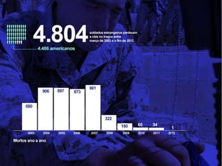 A guerra no Iraque durou 10 anos, começando com a invasão liderada pelos EUA em 2003 sob a alegação de que o Iraque possuía armas de destruição em massa. Apesar da captura e execução de Saddam Hussein, a insurgência continuou e a violência só diminuiu em 2008. As tropas dos EUA se retiraram completamente em 2011, deixando para trás um Iraque instável e dividido.