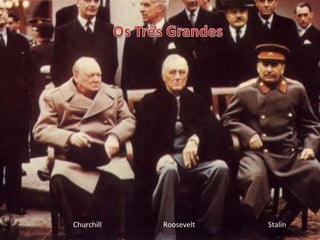 O documento descreve os principais eventos que levaram ao início da Guerra Fria entre a União Soviética e os Estados Unidos após a Segunda Guerra Mundial, incluindo as conferências de Teerã, Yalta e Potsdam para discutir o pós-guerra e a divisão da Alemanha e da Coréia, assim como a Doutrina Truman e o Plano Marshall que marcaram o início da política de contenção dos EUA contra a expansão soviética.