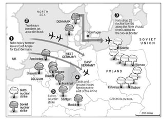 O documento descreve a Guerra Fria, período de tensões geopolíticas entre os Estados Unidos e a União Soviética após a Segunda Guerra Mundial. A disputa ideológica levou à divisão da Europa e de outras regiões em esferas de influência capitalista e socialista. Conflitos como a Guerra da Coreia e do Vietnã refletiam essa rivalidade. O colapso do socialismo na década de 1980 pôs fim à Guerra Fria e à bipolarização global.