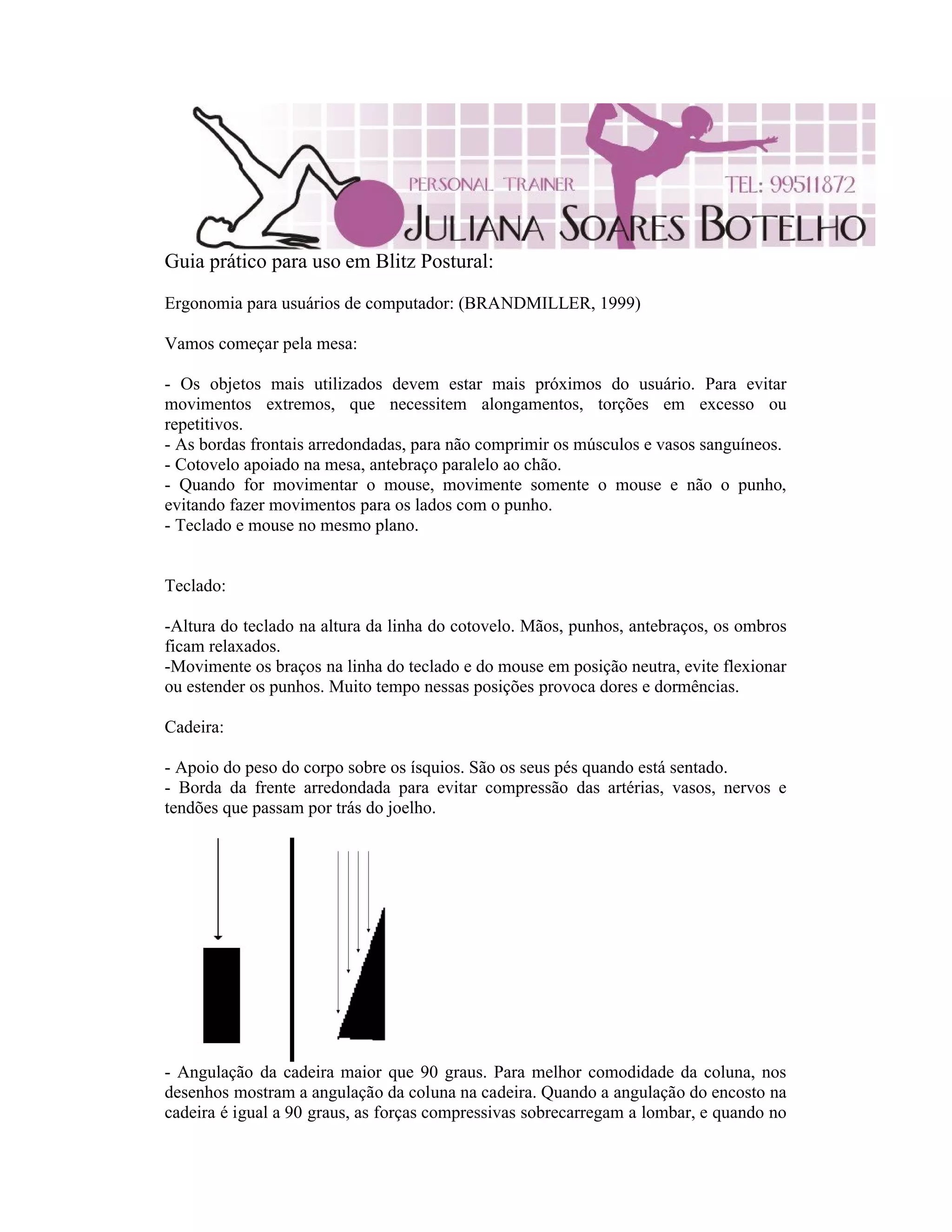 Ergonomia para usuários de computador: (BRANDMILLER, 1999)