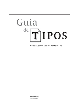 Este guia fornece informações sobre tipos de letra digitais, incluindo uma introdução sobre a necessidade do guia, seu público-alvo e escopo. Ele também contém um glossário com a anatomia dos tipos e medidas usadas na tipografia.