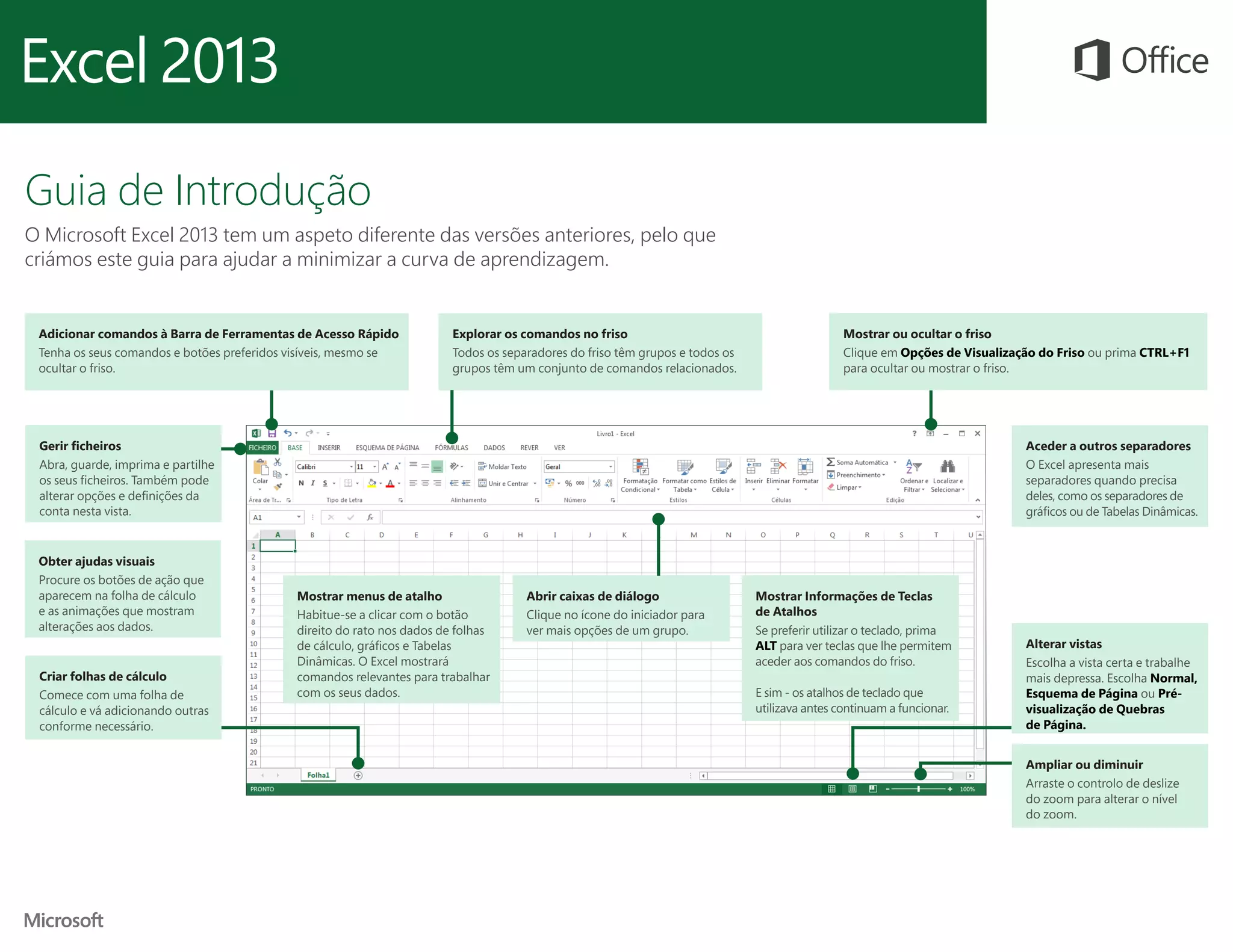 1) O documento fornece instruções sobre como usar os recursos da barra de ferramentas no Excel 2013, incluindo como adicionar comandos à Barra de Acesso Rápido e explorar os comandos no friso.