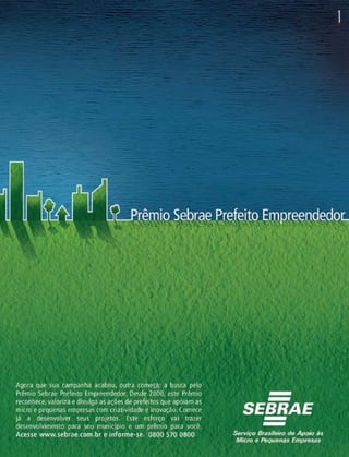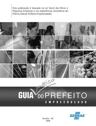 Este documento fornece dicas para que prefeitos estimulem o desenvolvimento local a partir dos pequenos negócios de forma sustentável. Ele aborda a importância do planejamento, da redução da burocracia e da informalidade, da criação de políticas tributárias favoráveis, da priorização das compras de pequenos negócios pelo governo local, dos investimentos em inovação, associativismo, crédito, educação empreendedora e da implementação da Lei Geral das Micro e Pequenas Empresas no município. O guia tem o objetivo