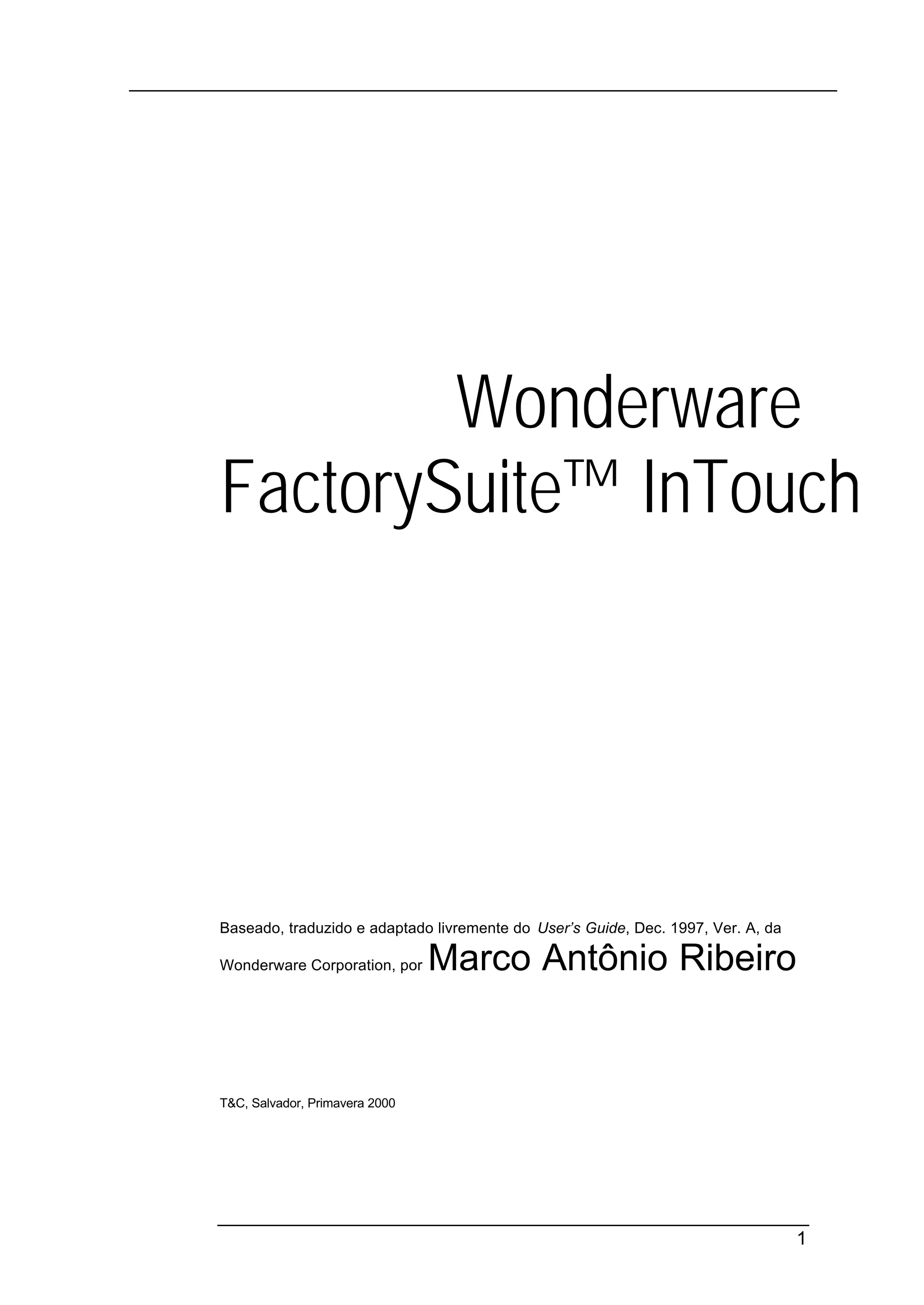 1. O documento descreve o software FactorySuite, incluindo seus principais componentes como InTouch, InControl, IndustrialSQL Server, Scout e ferramentas de aplicação.