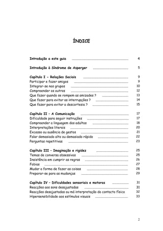 Este documento fornece estratégias práticas para professores lidarem com as dificuldades de alunos com Síndrome de Asperger. Aborda problemas nas áreas de relações sociais, comunicação e flexibilidade de pensamento, e oferece sugestões para ajudar esses alunos a melhorarem suas habilidades sociais, a se comunicarem de forma mais efetiva e a lidarem com mudanças e estímulos sensoriais.