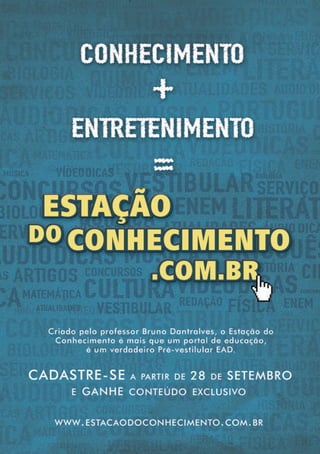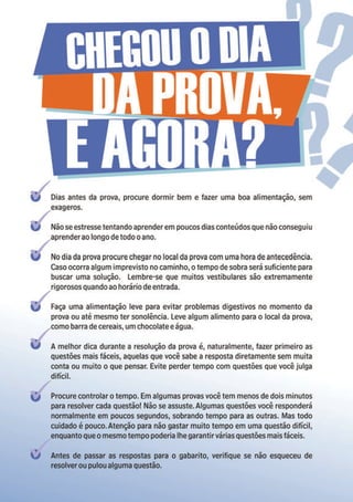 O documento apresenta o 'guia prático do vestibular e ENEM', destinado a ajudar mais de 5 milhões de jovens no Brasil a se prepararem para exames de forma eficiente. Ele abrange conteúdos de ciências naturais, humanas, linguagens e matemática, utilizando uma linguagem simples e ilustrada para facilitar a revisão. Com dicas, resumos e questões resolvidas, o guia visa reduzir a ansiedade e melhorar a performance dos candidatos no vestibular.