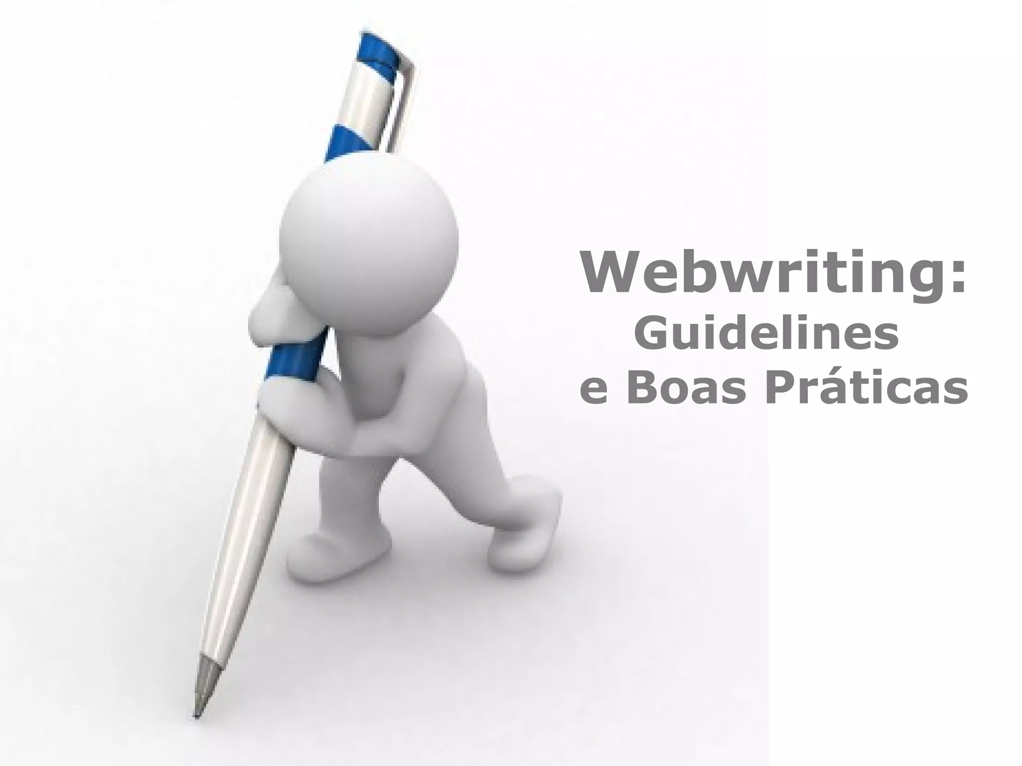 O documento fornece diretrizes para webwriting, incluindo: