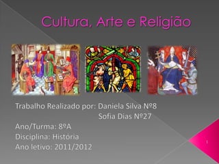O documento discute a literatura e arquitetura religiosa durante a Idade Média em Portugal. Ele descreve os principais gêneros literários como poesia culta, poesia popular, romances de cavalaria e crônicas. Também discute as principais ordens religiosas como Franciscanos e Dominicanos e características arquitetônicas como planta em cruz latina e abóbada de berço.