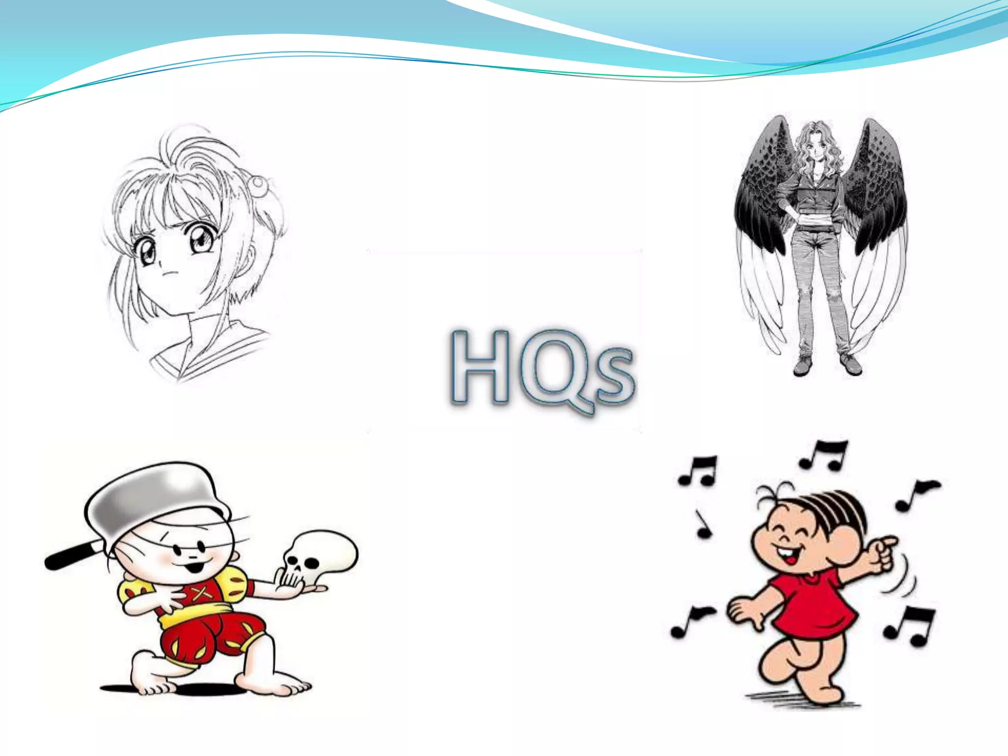 As HQs são uma forma de arte que combina texto e imagens para narrar histórias em vários gêneros. Maurício de Sousa e Ziraldo são dois dos quadrinistas brasileiros mais conhecidos, tendo criado personagens populares como Cebolinha e Menino Maluquinho. Mangás são histórias em quadrinhos japonesas que têm suas origens no teatro de sombras.