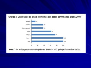 Este documento discute a pandemia de influenza, fornecendo detalhes sobre: 1) O que é uma pandemia e exemplos históricos; 2) Como novas cepas emergem e se espalham globalmente; 3) Fatores que tornam as pandemias difíceis de prever e comparar.