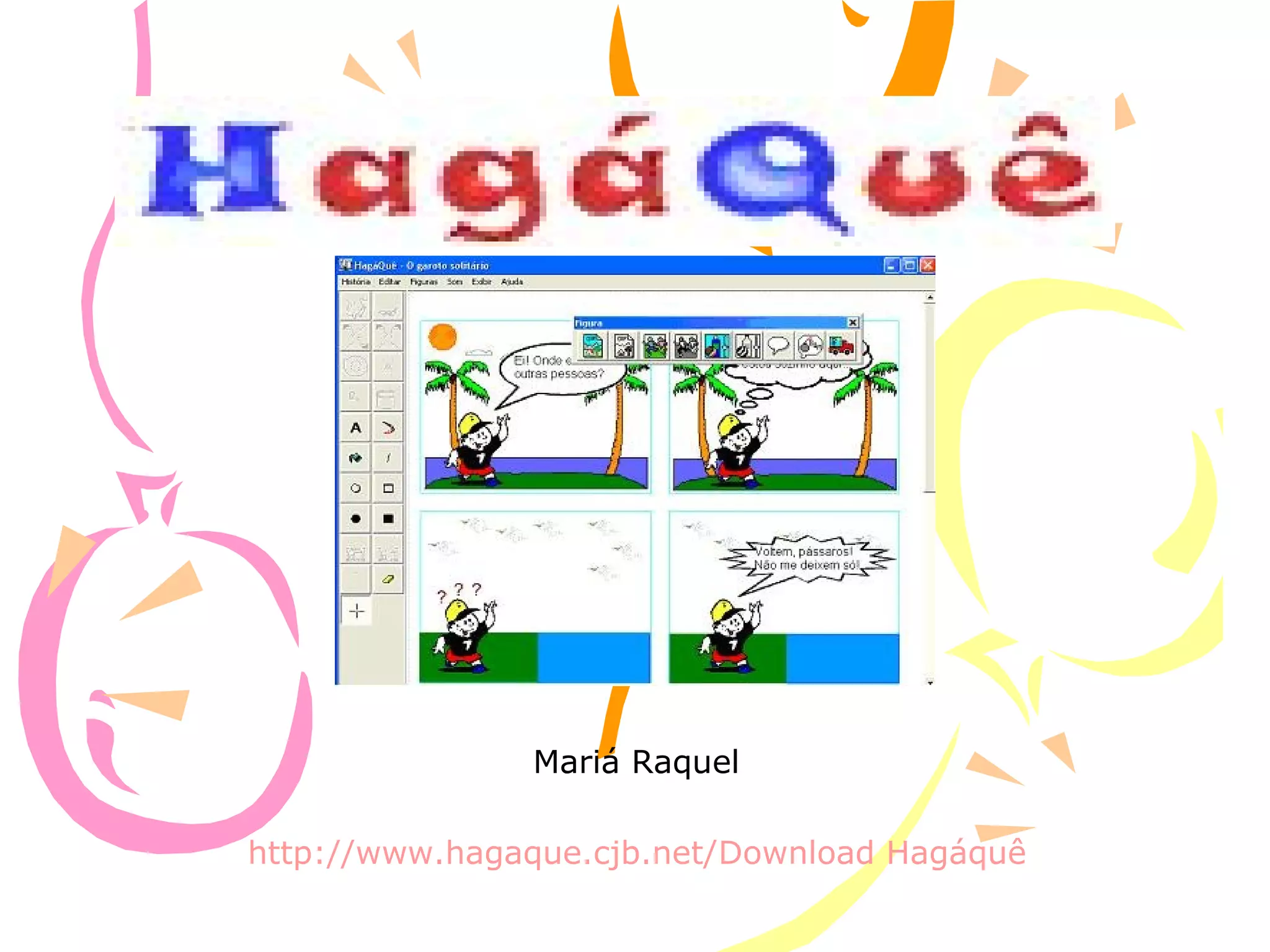 O HagáQuê é um software educativo para apoiar alfabetização e desenvolvimento da linguagem escrita através da criação de histórias em quadrinhos. Ele contém um banco de imagens para auxiliar na criação das histórias e pode ser usado para ensinar diversos conteúdos como geografia, matemática e história de forma lúdica e criativa.