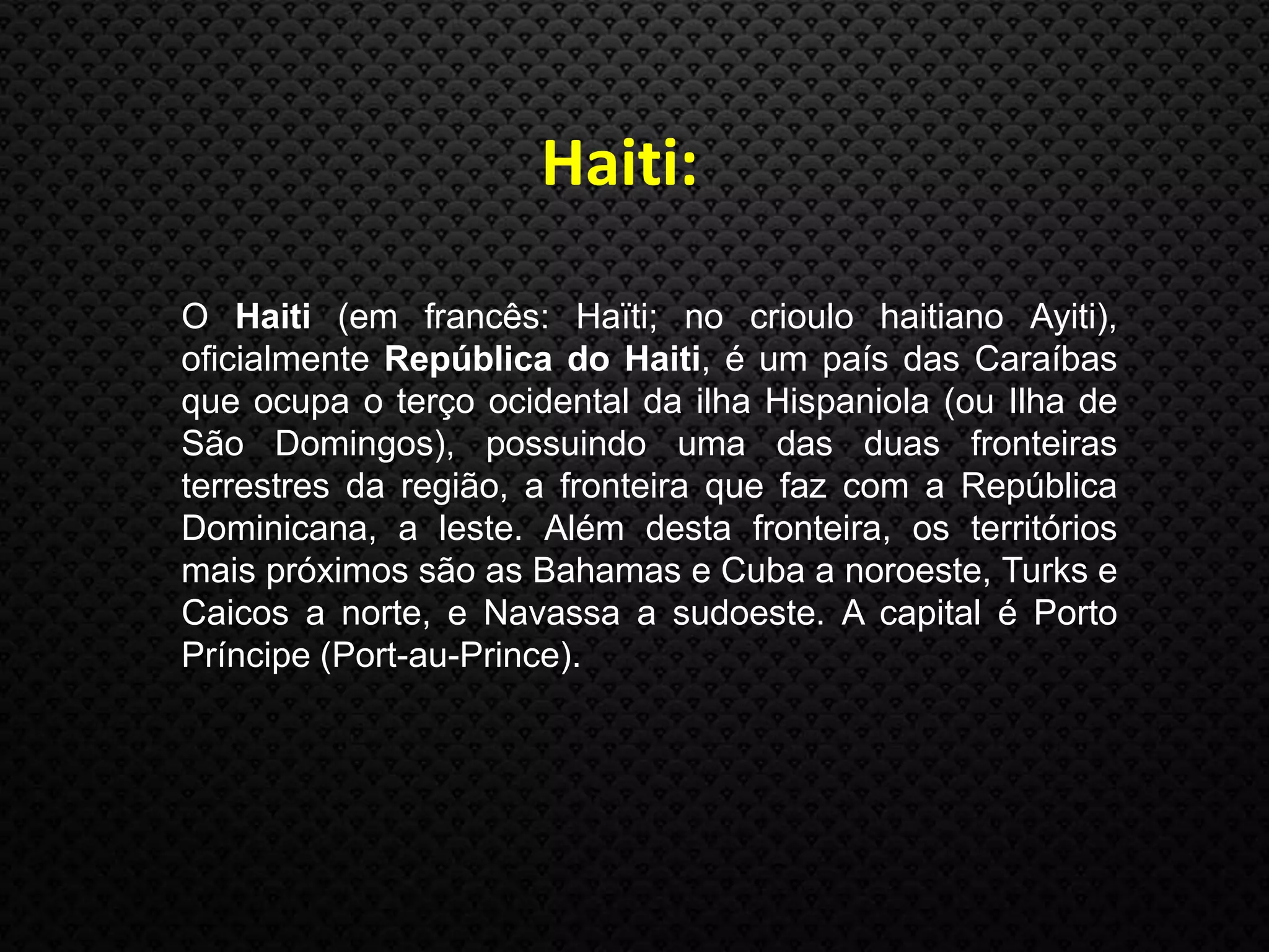 O Haiti (emfrancês: Haïti; no crioulo haitiano Ayiti),