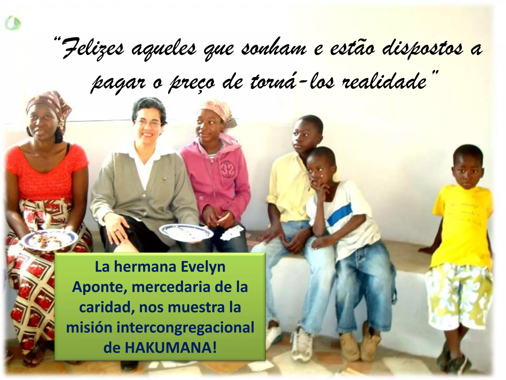 O documento descreve o Centro Hakumana, um local que acolhe pessoas vulneráveis como desnutridas, descriminadas e marginalizadas na cidade. O Centro procura melhorar a qualidade de vida dos seus utentes através de alimentação, atividades artesanais, saúde, educação e projetos de geração de renda. O Centro busca ser um local de convivência fraterna entre a equipe e os utentes.