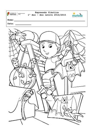 Este documento é um registro de aula de Expressão Plástica para o 1o ano do ano letivo 2014/2015, solicitando o nome do aluno e data.