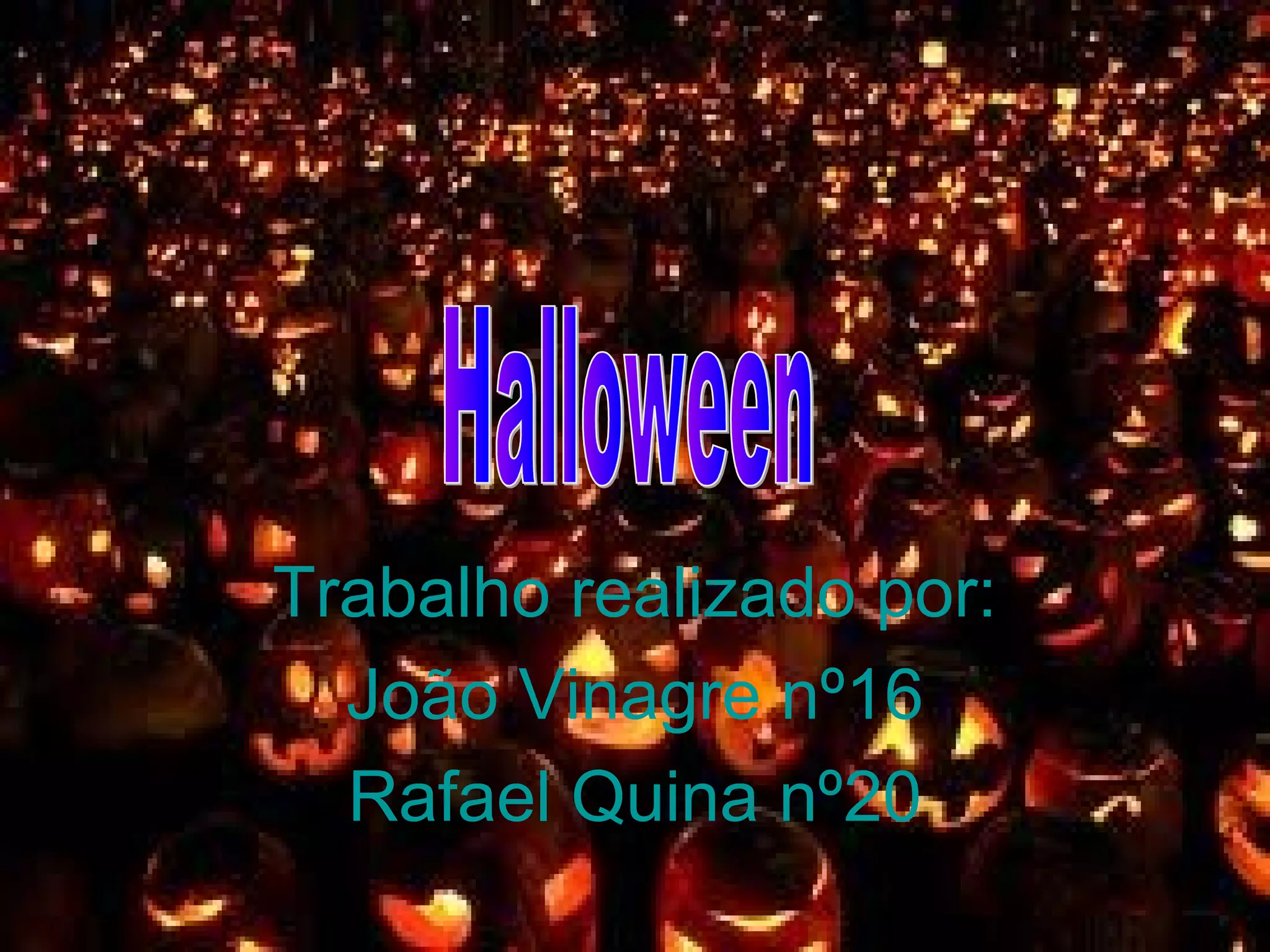 O documento discute a origem e história do Halloween. Comemora-se em 31 de outubro e surgiu entre os celtas há mais de 2.500 anos como uma festa pagã para assustar espíritos. A Igreja cristianizou a data, criando o Dia de Finados. Hoje é celebrado principalmente nos EUA, Irlanda, Espanha, Reino Unido e México.