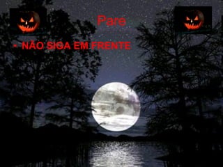 Uma pessoa avisa repetidamente outra para não continuar em frente e voltar, dizendo que é sua última chance antes de ser pego, sugerindo um jogo de captura no Halloween.