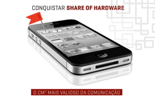 O documento discute o marketing mobile no Brasil, apresentando: 1) estatísticas sobre o crescimento dos usuários mobile e do acesso à internet por dispositivos móveis; 2) formatos de anúncios mobile como banners, vídeos e links para redes sociais; 3) detalhes sobre a rede premium de veiculação de anúncios em sites e aplicativos de notícias, esportes, entretenimento e outros.