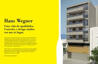 O documento resume as qualidades e características do empreendimento residencial Hans Wegner localizado em Botafogo no Rio de Janeiro. O projeto oferece 10 apartamentos de 2 e 3 quartos com áreas amplas e bem distribuídas, localização privilegiada próxima a transporte público e comércio, além de espaços de lazer como SPA, brinquedoteca e academia.