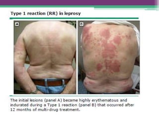As reações hansênicas são alterações do sistema imunológico que se exteriorizam como manifestações inflamatórias agudas e subagudas, ocorrendo mais frequentemente nos casos de hanseníase multibacilar. Podem ocorrer antes, durante ou depois do tratamento com poliquimioterapia e são a principal causa de lesões dos nervos e incapacidade provocadas pela hanseníase. Logo, é importante o diagnóstico precoce para evitar incapacidades.