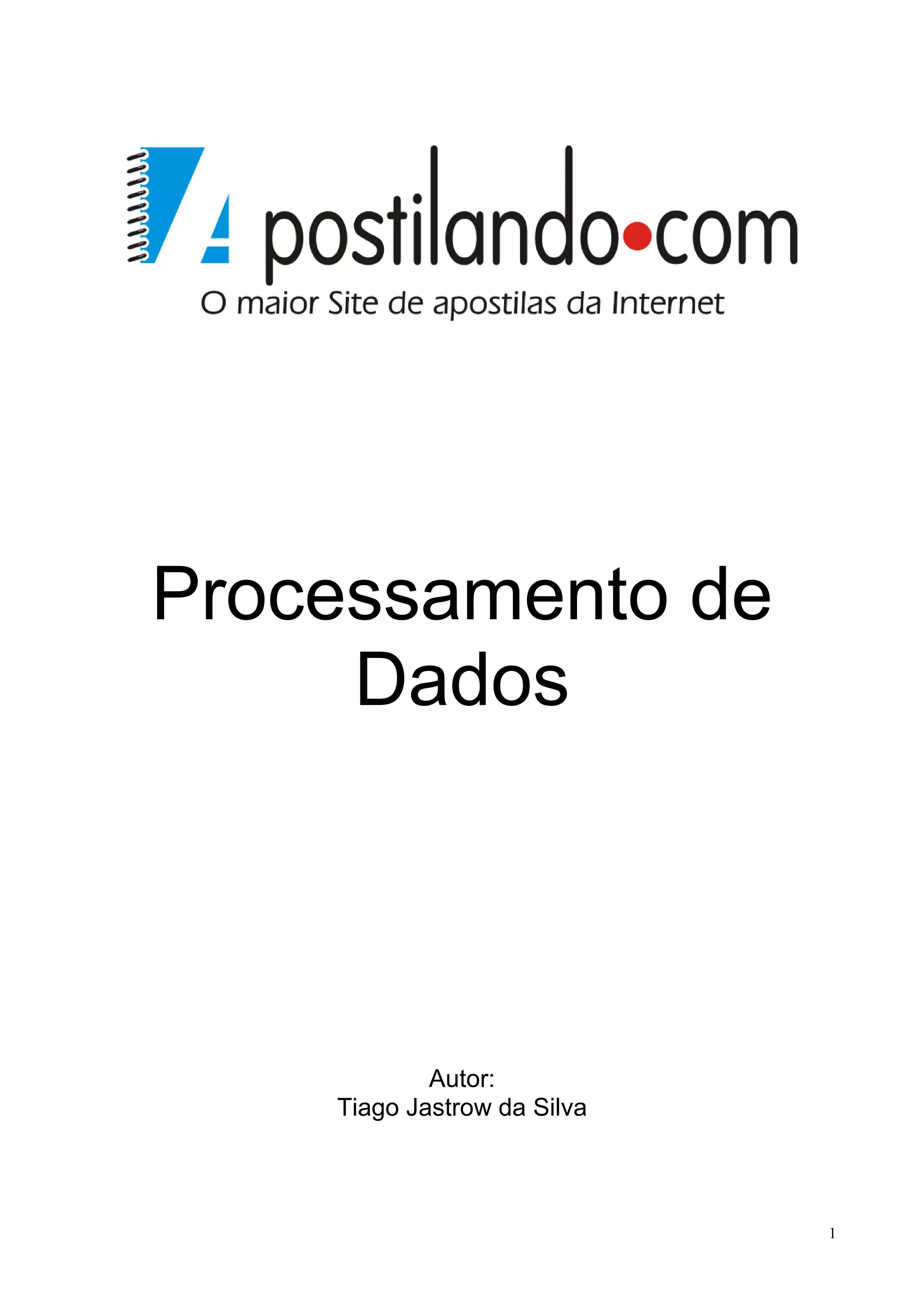 O documento discute o processamento de dados e os principais conceitos relacionados, incluindo hardware, software, linguagens de programação e seus diferentes níveis. Explica como os dados são processados para gerar informações e como os programas controlam as operações dos circuitos eletrônicos.