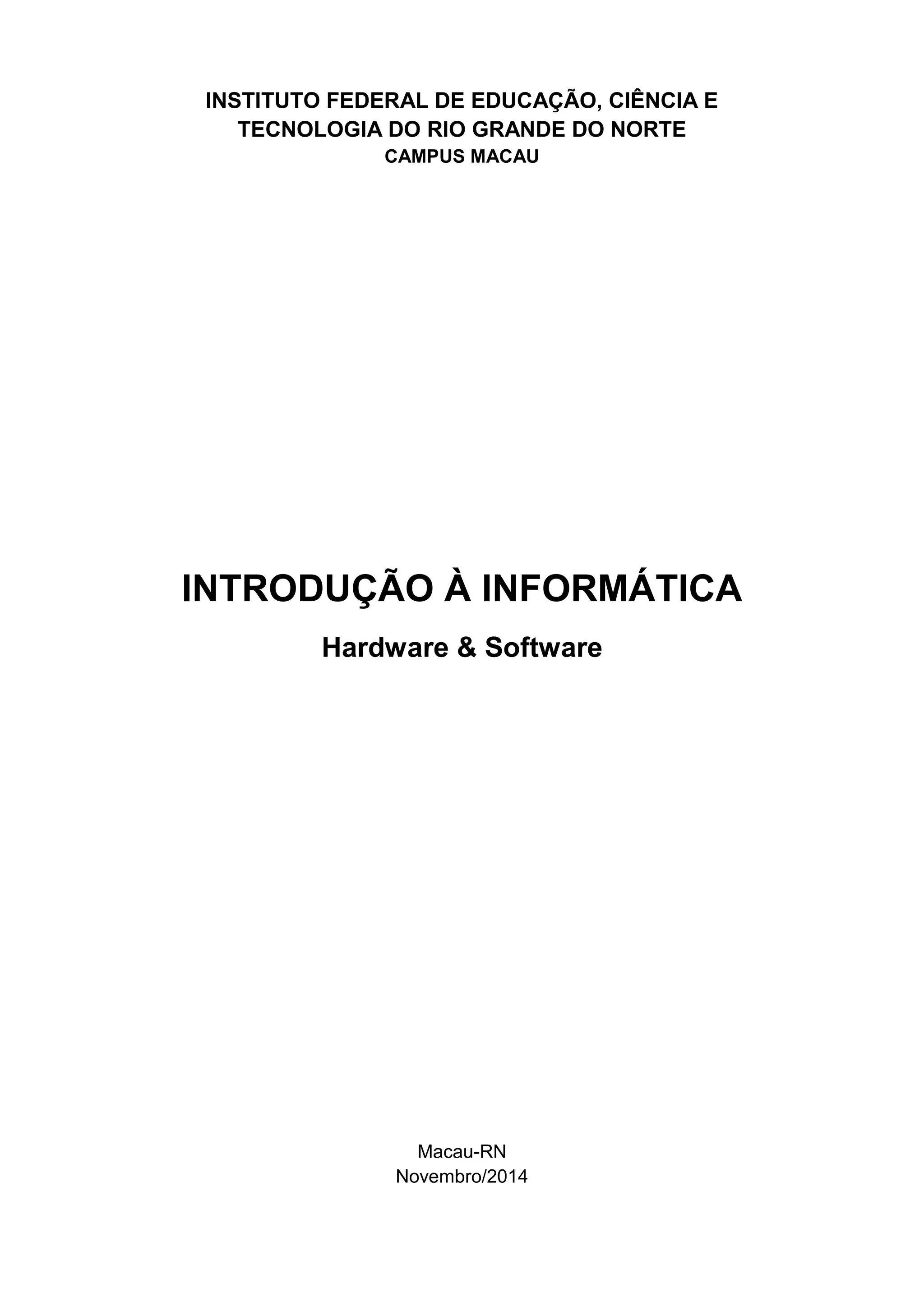 Este documento resume os principais conceitos de hardware e software de computadores. Ele descreve: