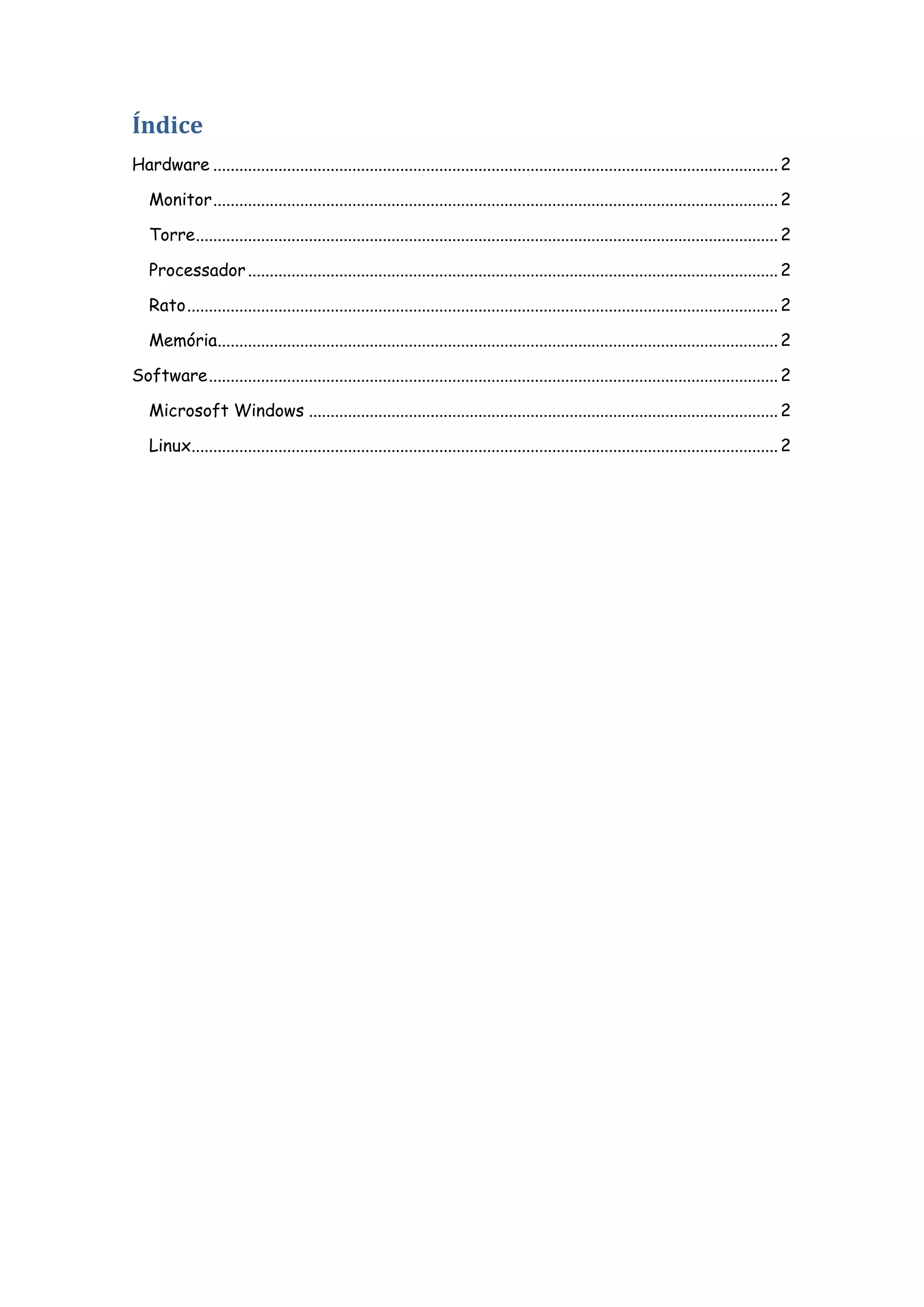 O documento fornece uma introdução sobre hardware e software para computadores, definindo os principais componentes de hardware como monitor, torre, processador, rato e memória e os sistemas operacionais Microsoft Windows e Linux como principais softwares.