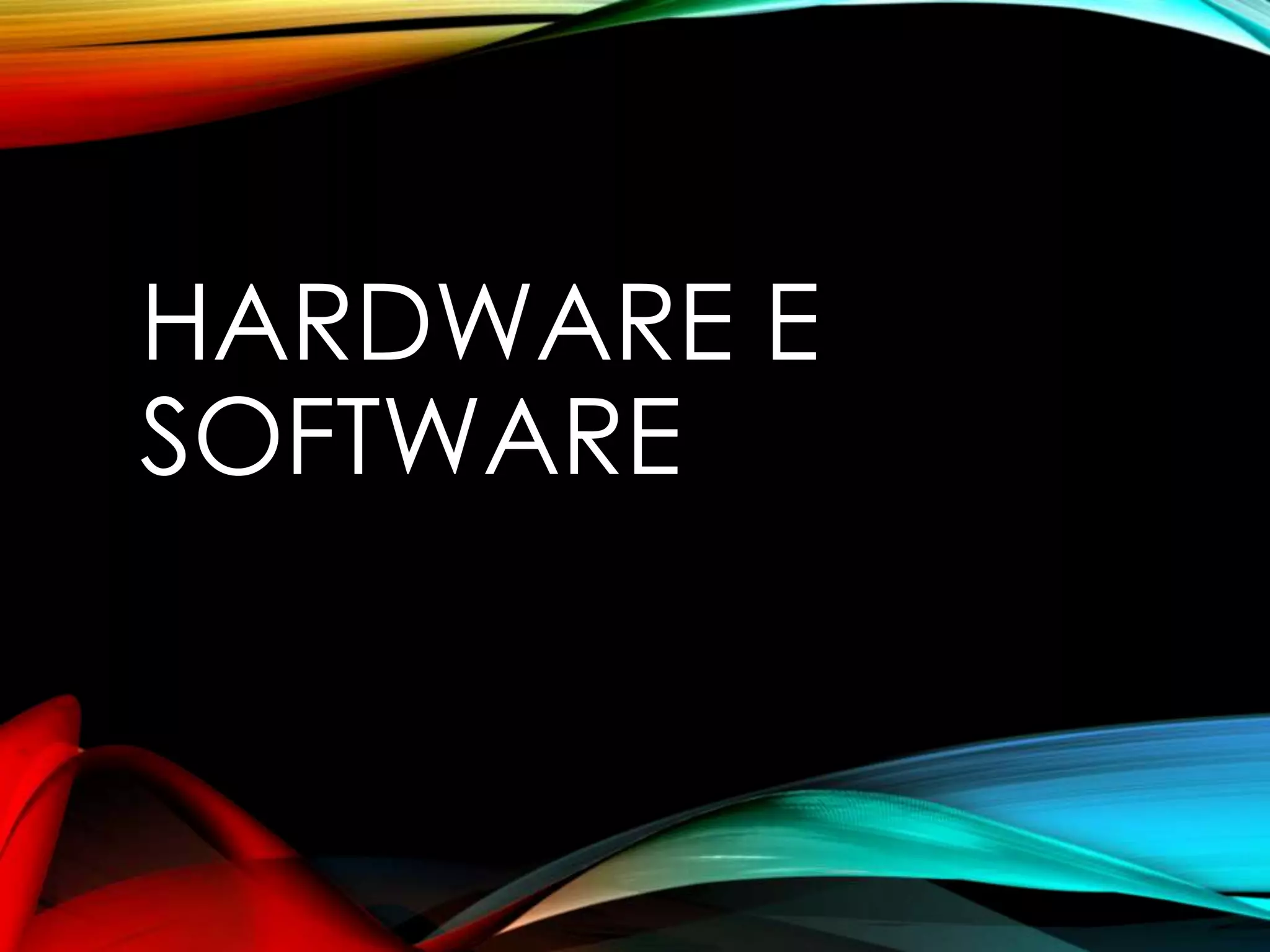 O documento discute hardware e software de computadores, incluindo: 1) a diferença entre hardware e software, 2) os principais tipos de software, e 3) dispositivos de entrada, saída e armazenamento de hardware, como teclados, monitores e discos rígidos.