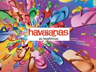 O documento discute o conceito de merchandising e sua aplicação nas lojas da Havaianas. Apresenta técnicas como exposição visual atraente dos produtos, estimular compras por impulso e criar uma atmosfera relaxante que induza as vendas. Também aborda o layout eficiente das lojas para guiar os consumidores e maximizar as compras.