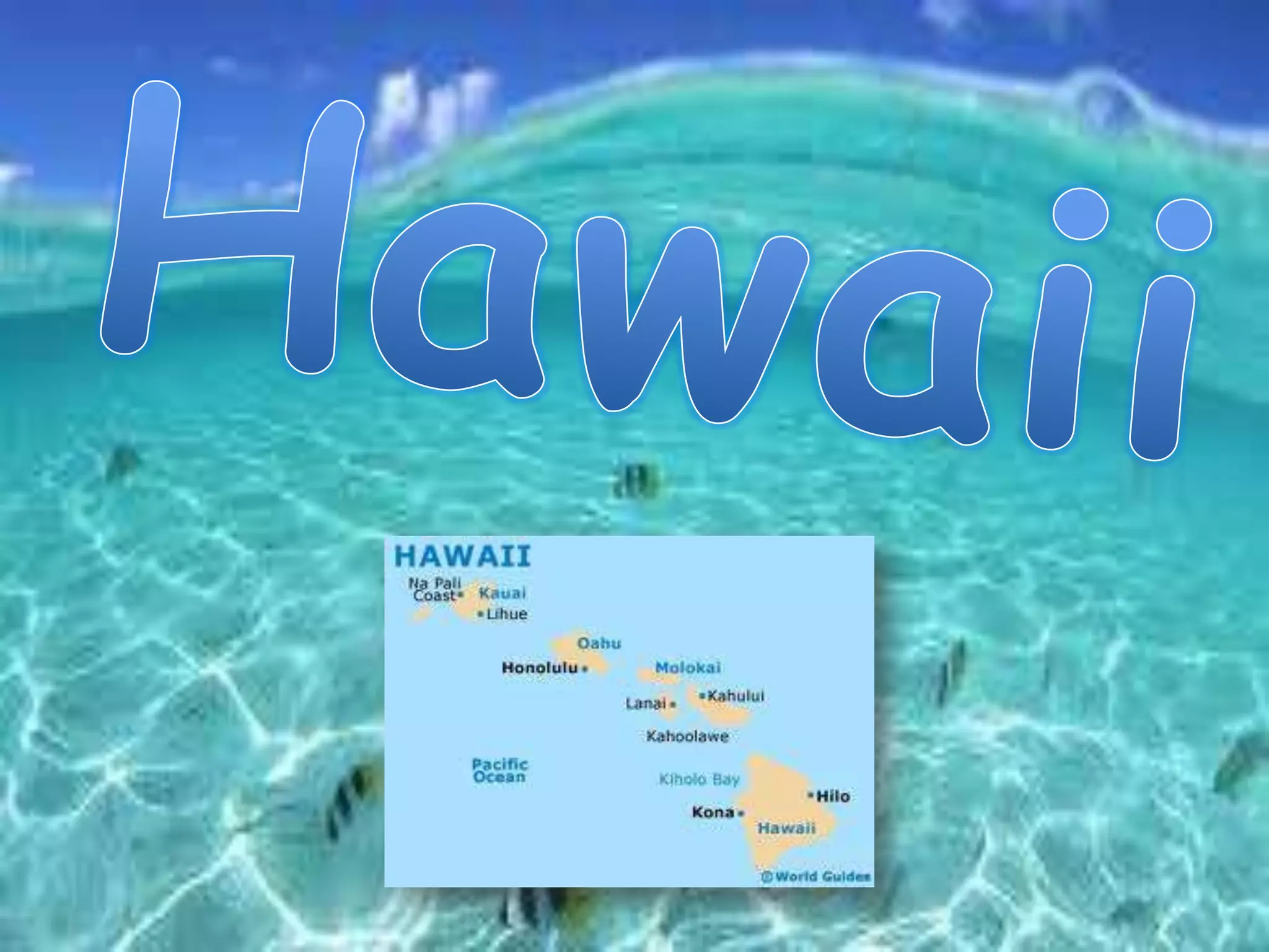 Hawaii é um arquipélago isolado no Pacífico, com Honolulu como sua capital e economia voltada para o turismo. Historicamente povoado por polinésios, foi unificado sob um governo monárquico por Kamehameha I em 1810. O estado oferece diversas atividades recreativas aquáticas, como surf e mergulho, além de trilhas em vulcões e transporte inter-ilhas acessível.