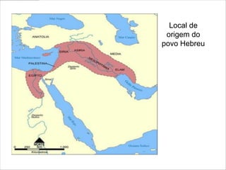 O documento resume a história do povo hebreu, desde seus primeiros patriarcas como Abraão até a criação do Estado de Israel em 1948. Ele descreve as principais fases por que passaram, como o período dos Patriarcas, Juízes, Reis e a Dominação Estrangeira, quando foram escravizados por diversos povos. Também menciona os principais acontecimentos, como a fuga do Egito sob Moisés e a conquista de Canaã.