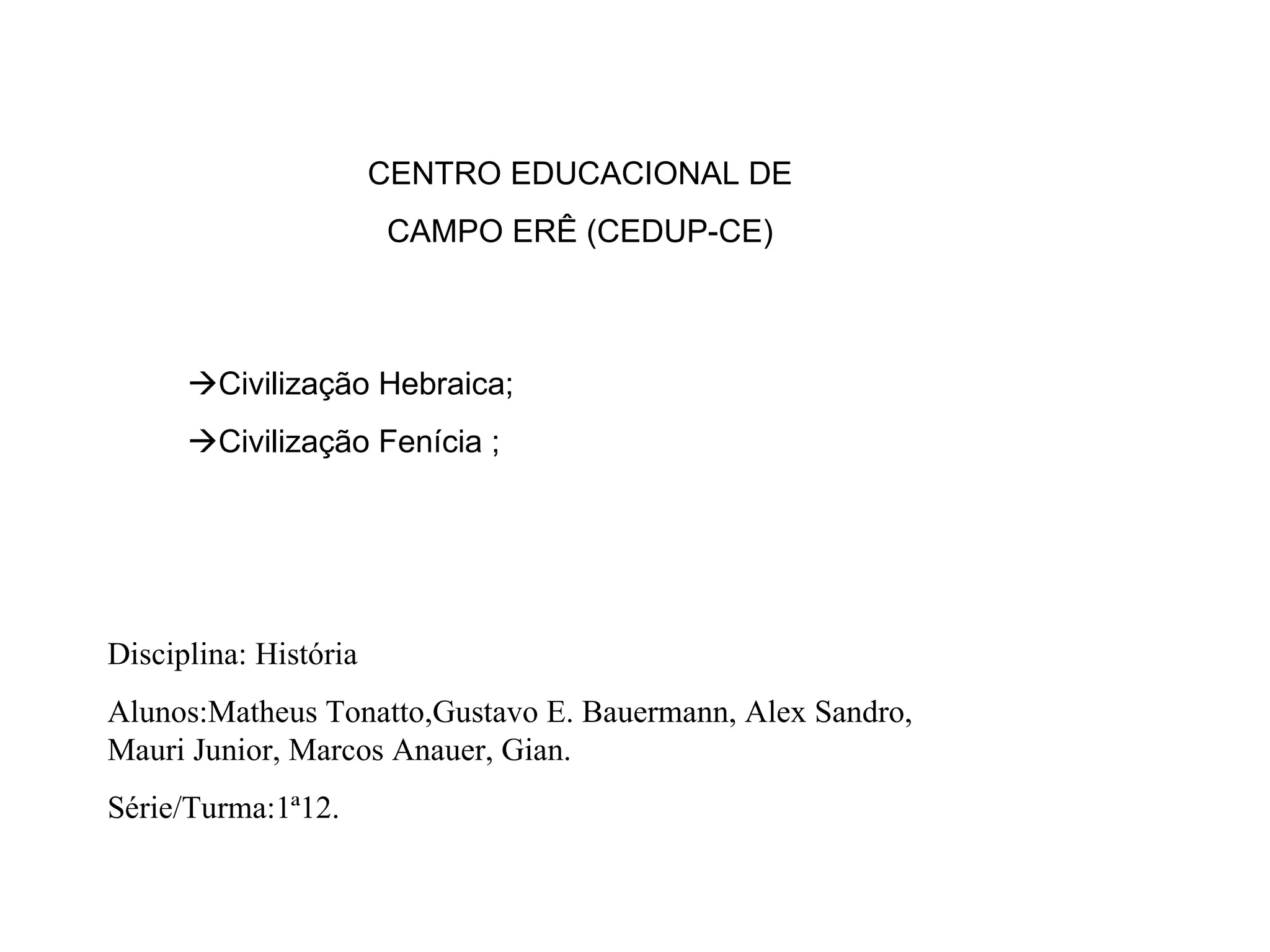Os alunos estudaram três civilizações antigas: a Civilização Hebraica, a Civilização Fenícia e os Hebreus na disciplina de História da 1a série do CEDUP-CE.