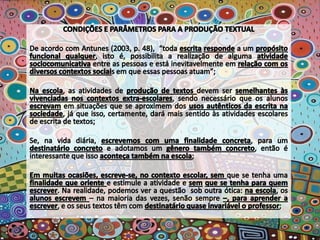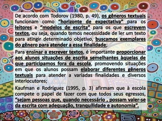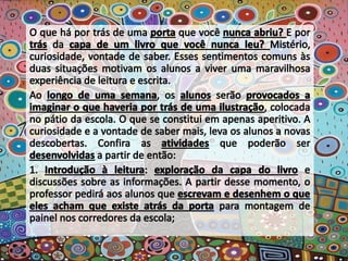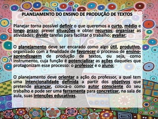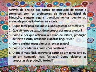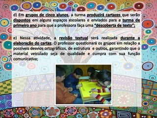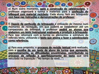 O documento apresenta poemas de Paulinho da Viola que refletem sobre a necessidade de estar atento às mudanças constantes e de criar novas possibilidades sem abandonar a tradição. Há também planos de aula que visam desenvolver capacidades de escrita dos alunos considerando diferentes finalidades, gêneros e públicos.