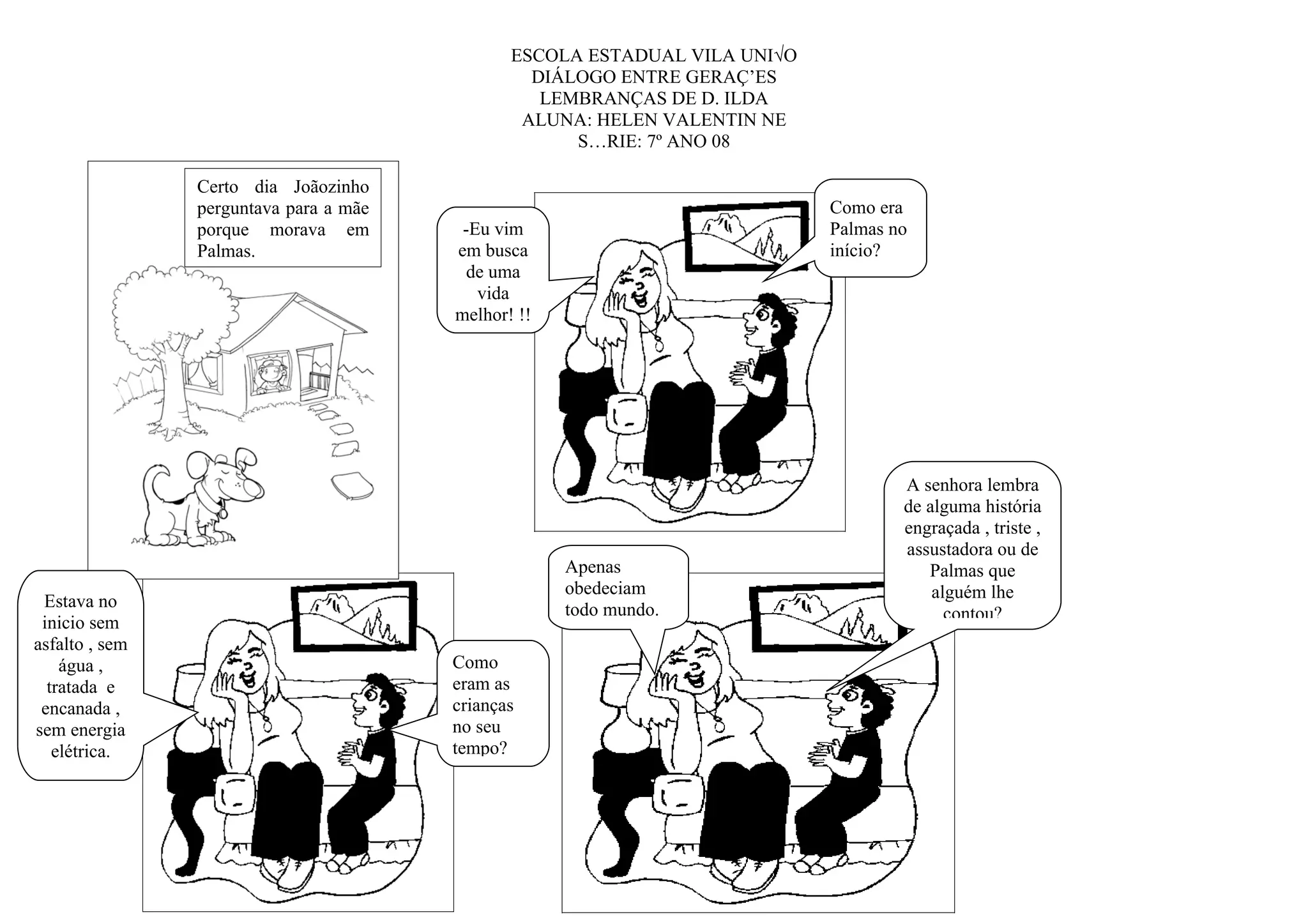 1) Joãozinho perguntava à mãe como era Palmas no início, sem asfalto, água encanada ou energia elétrica.