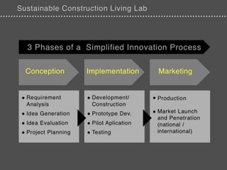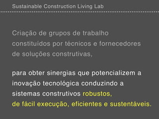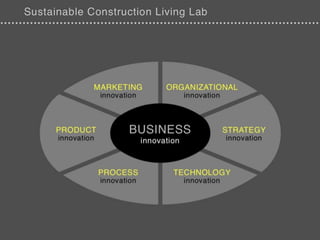 O documento discute inovações no setor da construção em Portugal, destacando a importância da reabilitação e melhorias em processos organizacionais e produtos. Apresenta também oportunidades de financiamento e novos modelos de negócio, enfatizando a colaboração e o compartilhamento de conhecimento entre os protagonistas do setor. A análise inclui a identificação de desafios e as necessidades de adaptação do setor à realidade atual.