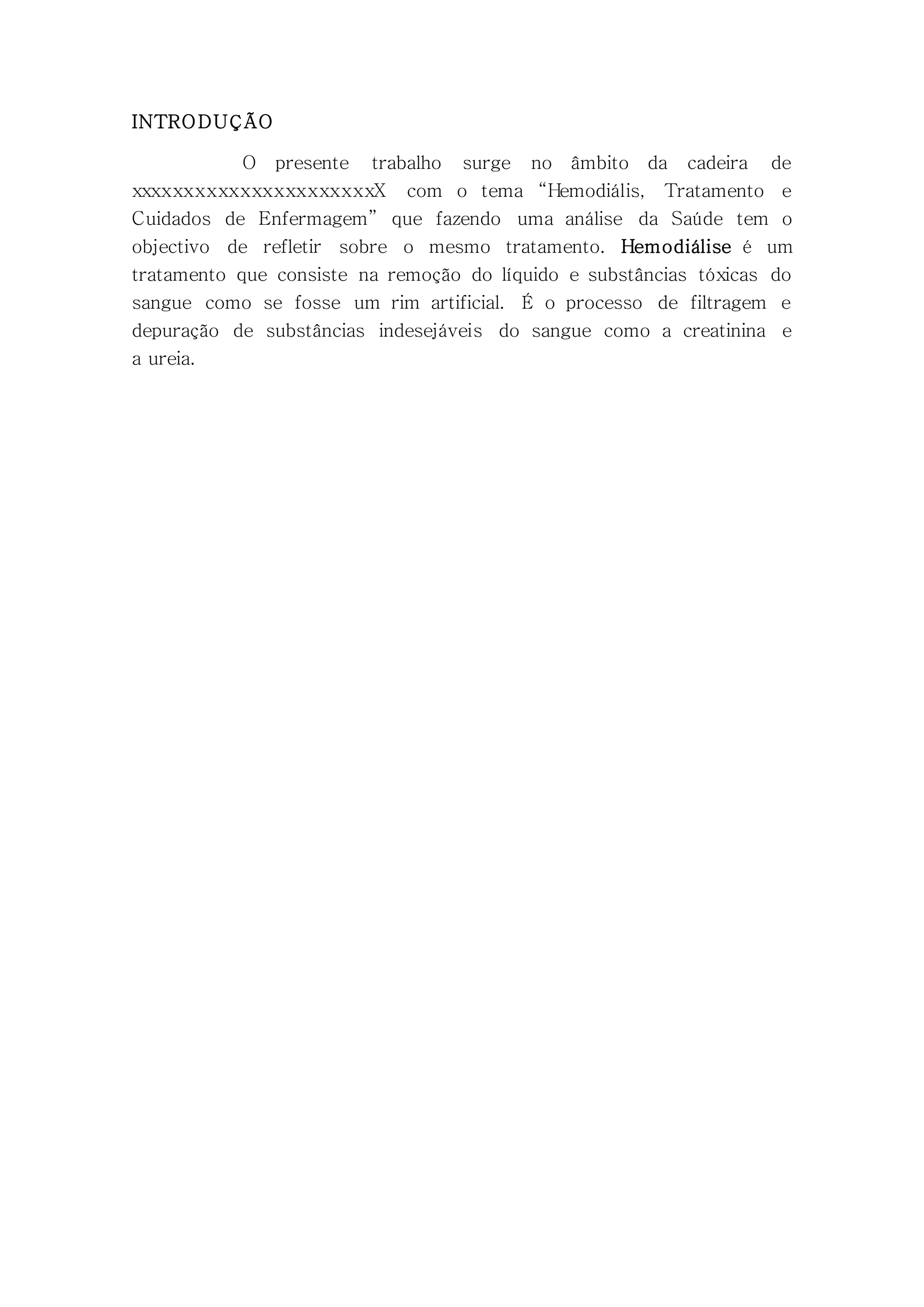 O documento discute os conceitos básicos, tratamento e cuidados da hemodiálise. A hemodiálise é um tratamento que usa um filtro artificial para remover líquidos e substâncias tóxicas do sangue, como um rim faria. O sangue é filtrado através de uma membrana semipermeável em uma máquina de diálise. Uma sessão típica dura 4 horas, 3 vezes por semana, embora a frequência e duração possam variar dependendo das necessidades do paciente.