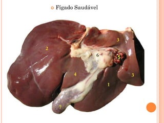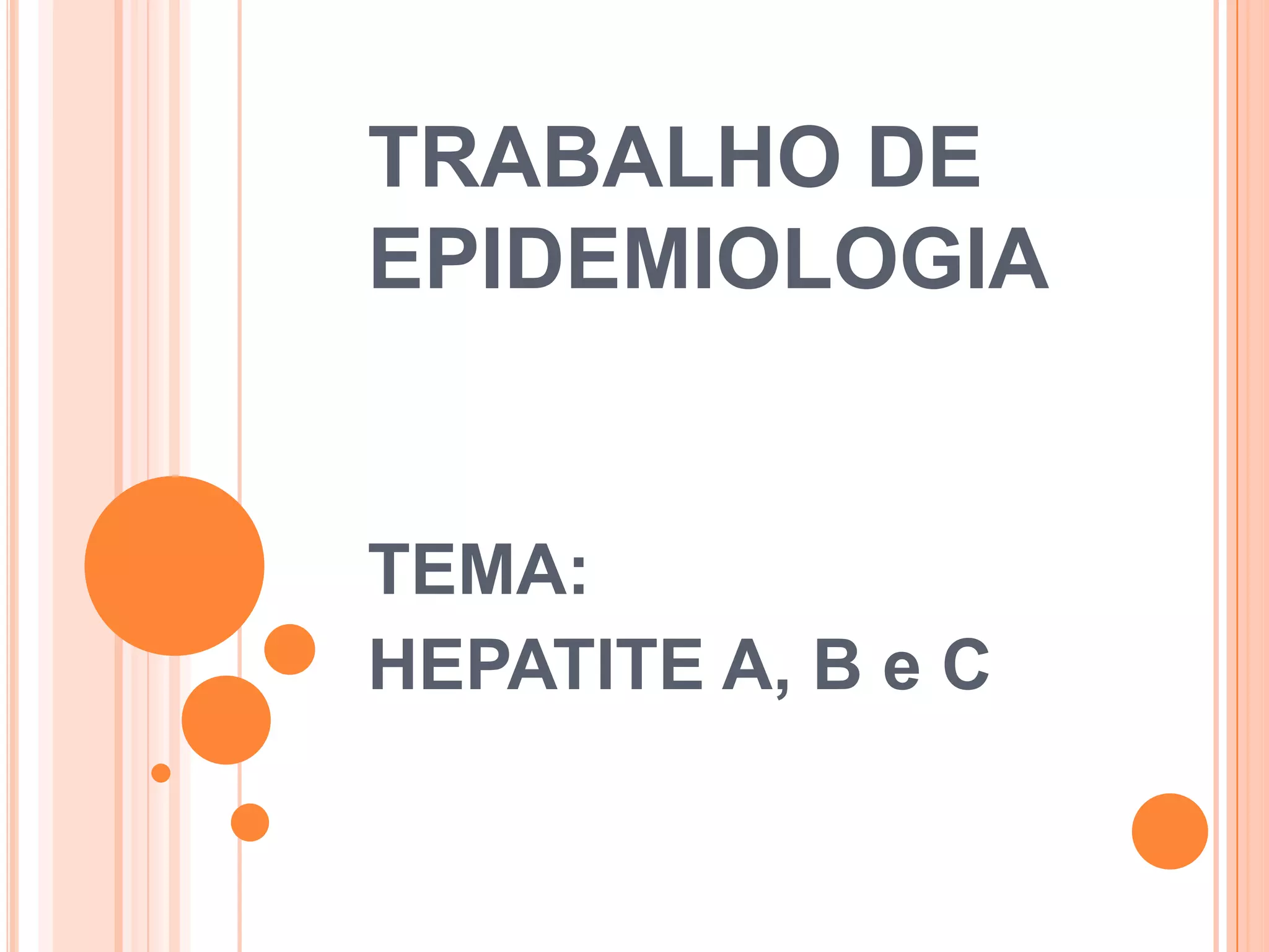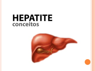 O documento discute a história e características das hepatites A, B e C. A hepatite é uma inflamação do fígado que pode variar de leve a fatal, sendo causada por vírus ou outros fatores. A hepatite A é transmitida por via fecal-oral, a hepatite B por sangue e fluidos corporais, e a hepatite C principalmente por sangue. A prevenção inclui vacinação, higiene, e evitar compartilhamento de agulhas.