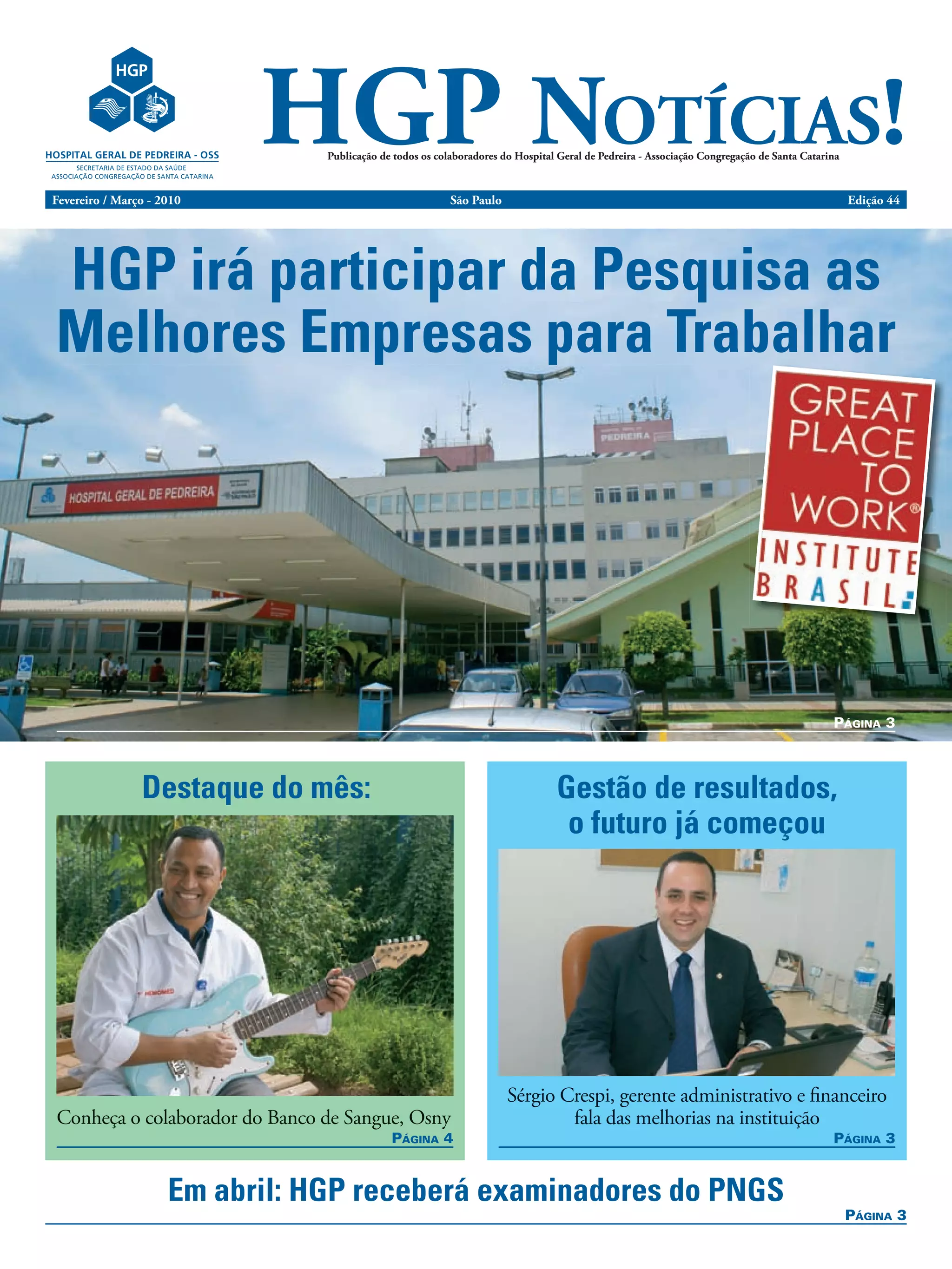 2) Em abril, o HGP receberá examinadores do Prêmio Nacional da Gestão em Saúde para avaliação visando a melhoria contínua.