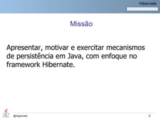 1. A missão do curso é apresentar, motivar e exercitar mecanismos de persistência em Java com foco no framework Hibernate.