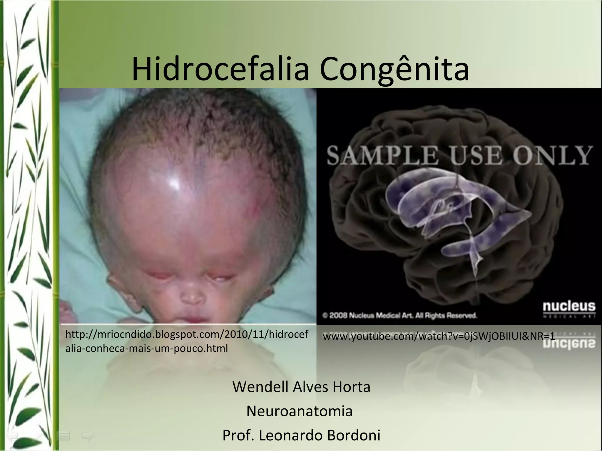 A hidrocefalia é o acúmulo anormal de líquido cefalorraquidiano no crânio, podendo ser congênita ou adquirida. Pode ser causada por fatores genéticos, infecções ou desnutrição materna. Os sintomas incluem vômitos, letargia e déficits neurológicos. O diagnóstico é feito por ultrassonografia e exames complementares, e o tratamento envolve cirurgia como a colocação de um shunt ou terceiroventriculostomia.