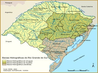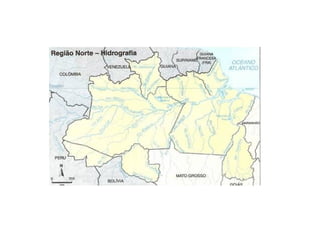 O documento discute a hidrografia brasileira, descrevendo as principais bacias hidrográficas do país, como a Bacia Amazônica, Bacia do São Francisco e Bacia do Paraná. Também aborda os problemas ambientais nessas bacias, incluindo despejo de efluentes, poluição do solo e contaminação de rios.