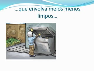 O documento discute a importância da higiene para a saúde, definindo higiene como parte da medicina que procura a prevenção e manutenção do bem-estar individual e coletivo através do combate a fatores nocivos, asseio, limpeza e proteção. A higiene pode ser individual, coletiva ou social/pública e requer cuidados com a alimentação, o corpo, o vestuário e a mente. Uma boa higiene previne doenças transmitidas por água, alimentos e ar contaminados.