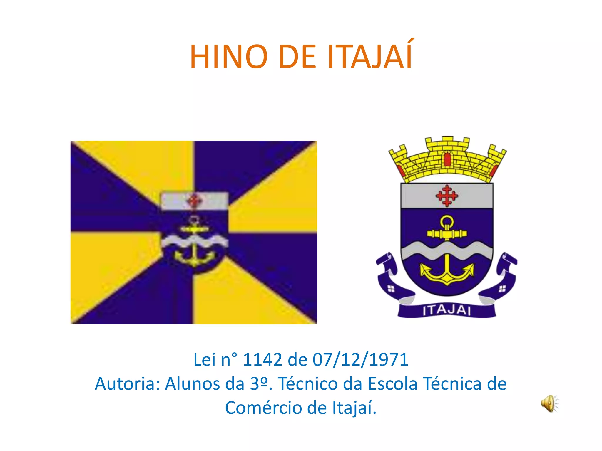 O hino de Itajai descreve a cidade como uma terra de sol e mar com belas praias, brisa suave e ondas na areia. Celebra a cidade como um lugar feliz com sonhos, ruas floridas, canções e corações, com um povo hospitaleiro e gentil que não tem igual. Conclui convidando a visitar esta terra alegre de fé.