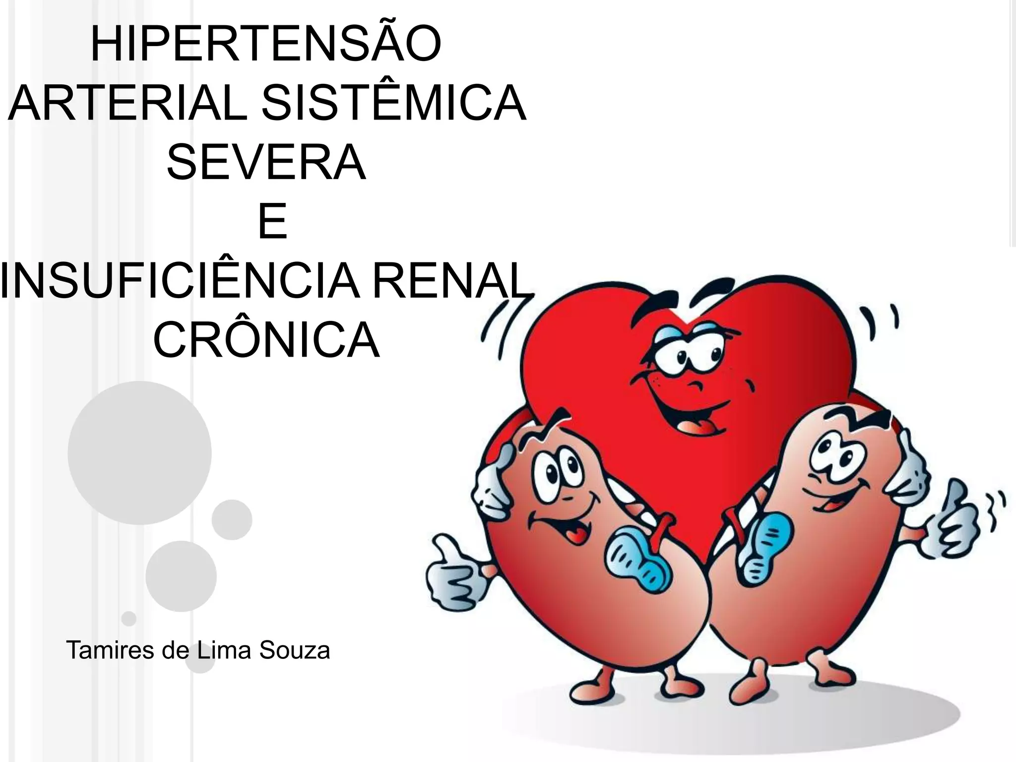 O documento descreve um caso de hipertensão arterial sistêmica severa e insuficiência renal crônica, duas condições médicas graves e intimamente relacionadas que afetam os rins e o sistema cardiovascular.