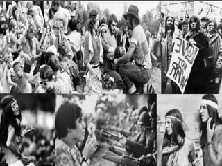 Os hippies surgiram nos Estados Unidos na década de 1960 como um movimento contracultural que defendia valores como o amor livre, a não-violência e o estilo de vida comunitário e em harmonia com a natureza. Eles se opunham aos valores da classe média americana como o consumismo, o patriotismo e o trabalho. Os hippies usavam roupas coloridas e folheadas e tinham cabelos compridos, defendendo uma vida mais simples e espiritual.