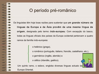 1) O documento descreve a evolução da língua portuguesa desde suas origens indo-europeias até o português moderno.