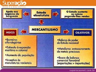 3) Apresenta brevemente teorias políticas da época como o direito divino dos reis e a defesa do absolutismo por pensadores como