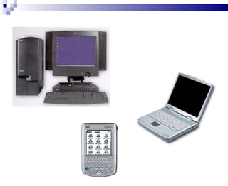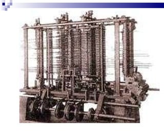 O documento resume a história do desenvolvimento dos computadores desde as primeiras máquinas mecânicas de calcular no século 17 até os computadores modernos. Detalha os principais marcos como o desenvolvimento dos cartões perfurados, das válvulas eletrônicas e dos transistores, culminando na criação dos primeiros microprocessadores e computadores pessoais nas décadas de 1970 e 1980.